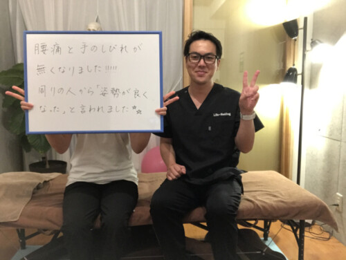 「身体の他の部位の痛みも殆ど無く過ごすことができています。知り合いからも「最近姿勢が良くなったね」と嬉しい言葉を頂きました。」
