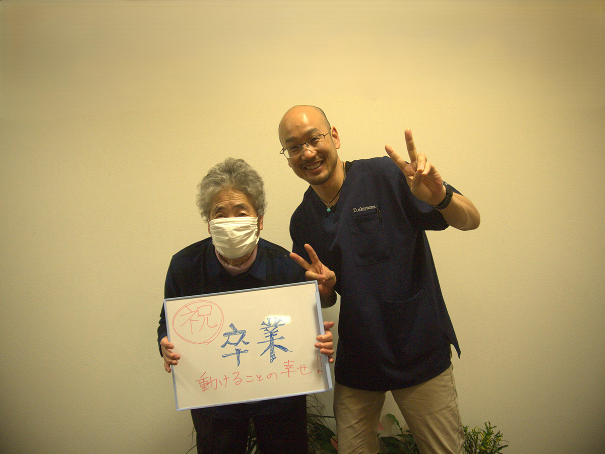 A、今までと違って自分でも知らん内に動くようになりました。ずっと行ってなかったパーマ屋さんにも行けるようになり、今までと違って姿勢も良くてびっくりされました。